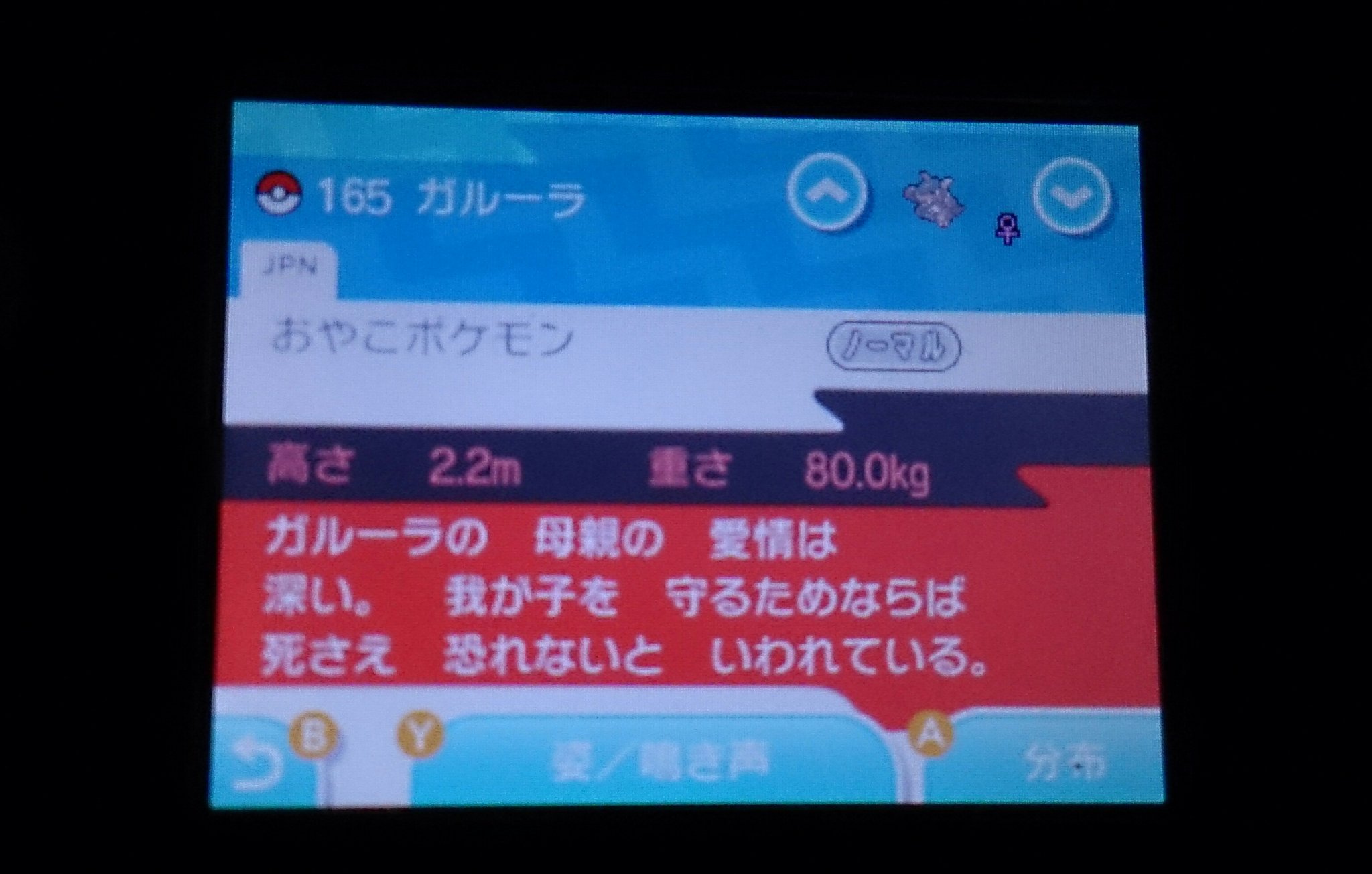 Japa Nick 基本的にポケモンの都市伝説みたいなやつ信じてないんだけど 今作の図鑑説明みるとカラカラがガルーラの子供って話は本当なのかなって思いますわ 図鑑番号もカラカラ ガラガラ ガルーラだし ゲーフリすごい意識させに来てる
